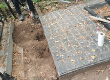 Для начала мы демонтировали уже имеющиеся элементы: снесли бетонный цоколь и изъяли стоящие кресты.
